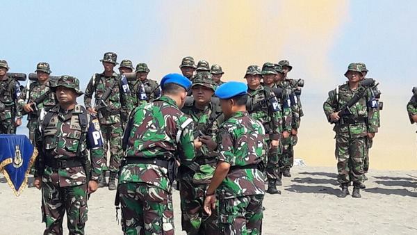 Penutupan pelatihan Polisi Militer Angkatan Laut.MNOL - Sukabumi, Wakil Komandan Pusat Polisi Militer Kolonel Laut (PM) Zulkifli Mahmud menutup Latihan Fungsi Kepolisian Militer Tahun 2016 dengan upacara militer di Pantai Pelabuhan Ratu, Sukabumi, Jawa Barat, Jumat (12/08/2016).
