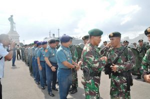 Kepala Staf Koarmatim (Kasarmatim) Laksamana Pertama (Laksma) TNI I.N.G. Ariawan, S.E., M.M., mewakili Panglima Komando Armada RI Kawasan Timur (Pangarmatim) Laksda TNI Darwanto, S.H., M.A.P menghadiri pelepasan Satgas Pengamanan Perbatasan Republik Indonesia-Papua Nugini dari Batalyon Infanteri (Yonif) Para Raider 503/18/2 K TNI AD tersebut.